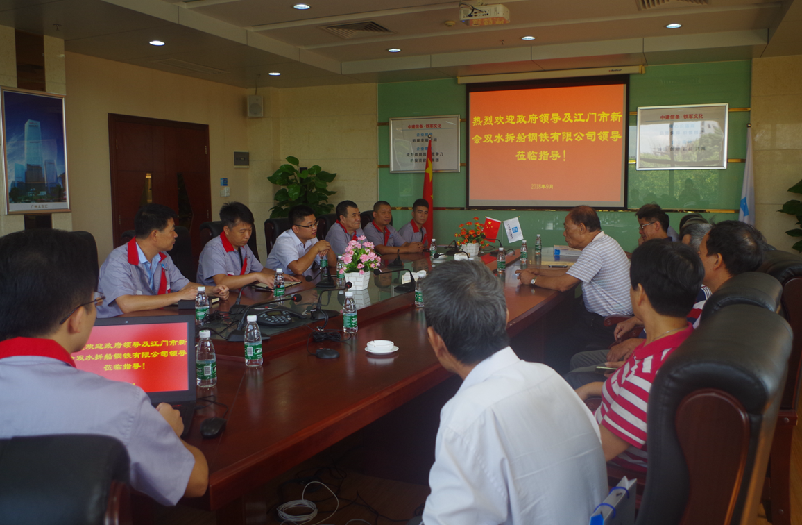 2018年9月12日,江门市新会双水拆船钢铁有限公司谭董事长携公司领导班子成员与双水镇经信与投资局邓局长一行莅临我司考察交流,以车间考察及座谈会的形式深入剖析行业现状及发展趋势。