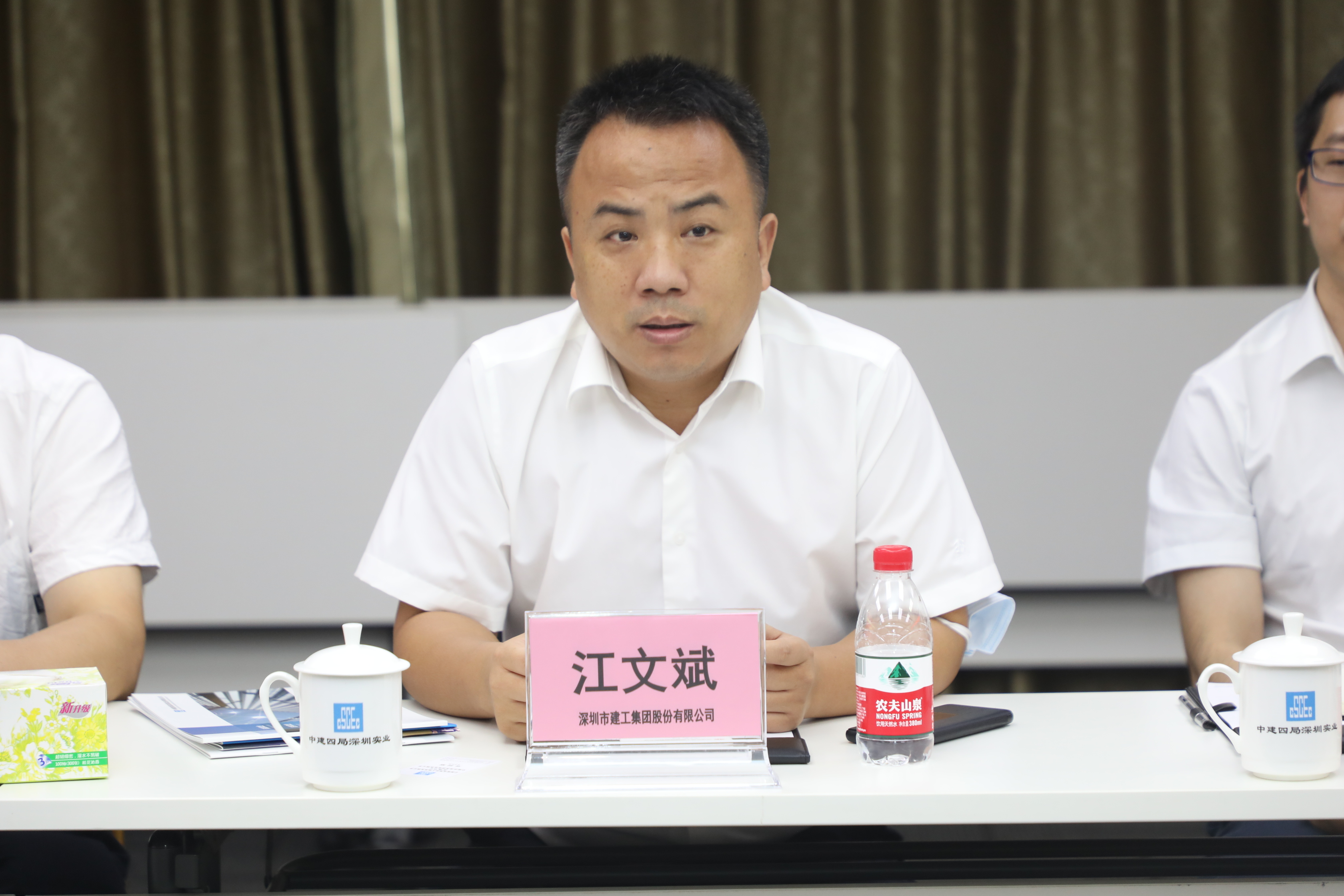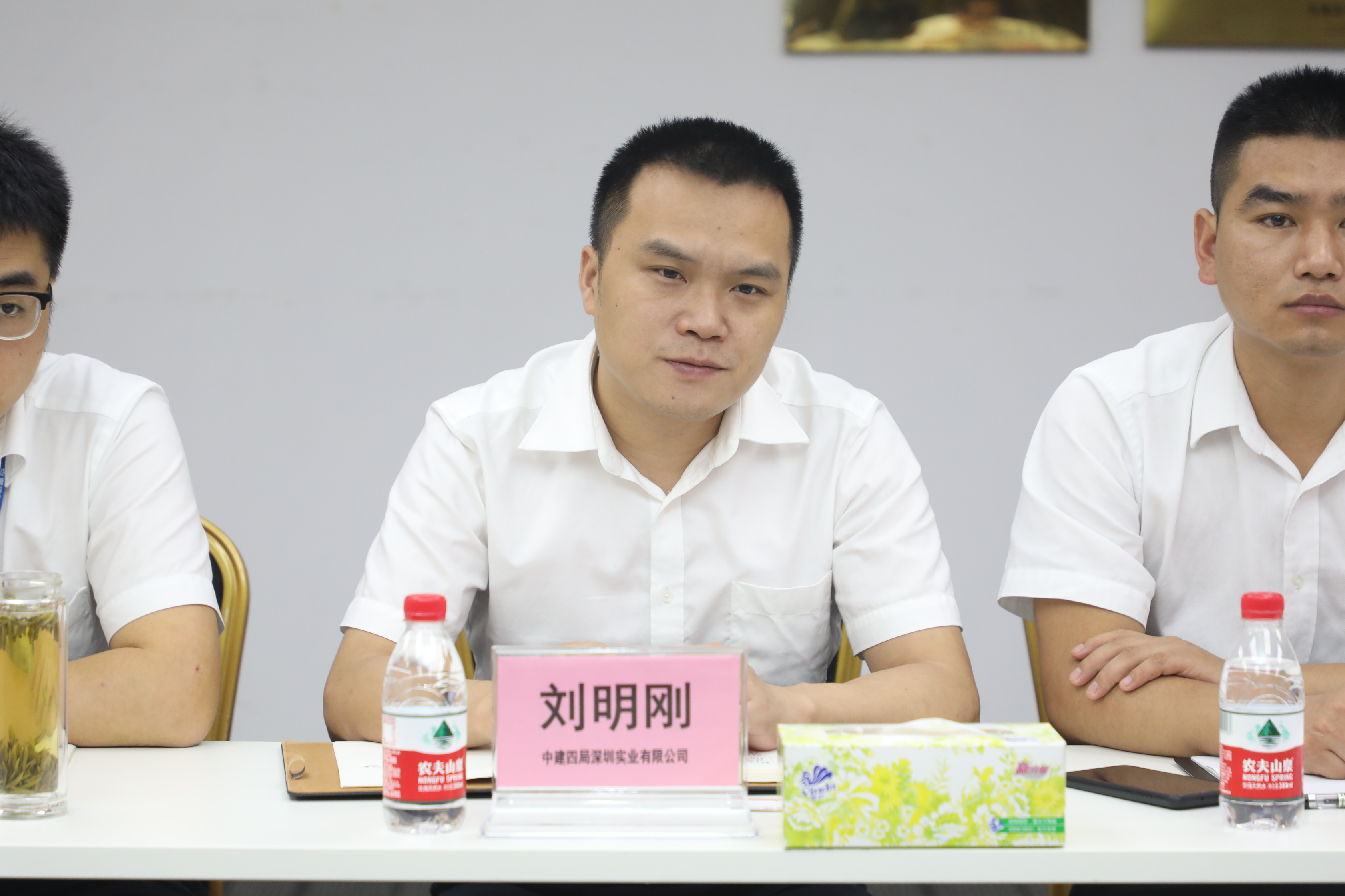 7月14日上午,深圳建工集团有限公司副总裁江文斌一行到中建四局深圳实业有限公司进行业务交流。深圳实业公司副总经理刘明刚、副总经理谢杰、副总经理解峰、模架事业部经理任子丰,广东中建新型建筑构件有限公司副总经理罗炳锋对江文斌一行的到来表示热烈欢迎。
